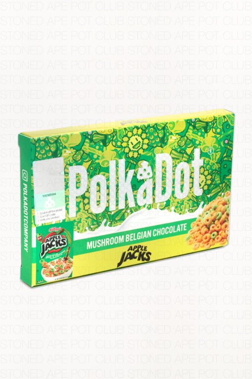 Whether you’re a first-time explorer or a seasoned psychonaut, the Polkadot Apple Jacks edition delivers a smooth, uplifting journey with flavors that remind you of Saturday mornings and childhood sweetness. Every bite combines crunchy Apple Jacks cereal pieces with silky chocolate, masking the earthy mushroom taste while providing a consistent psychedelic dose.